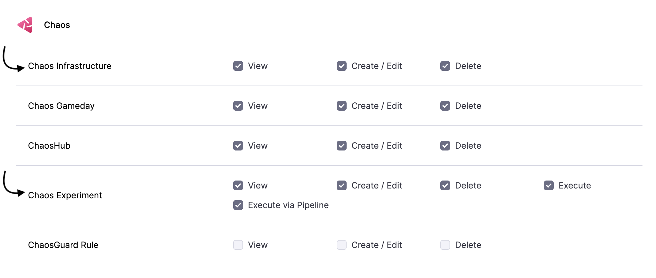 Chaos experiments are executed in a chaos infrastructure, hence you need to have access to create/edit and view the chaos infrastructure. Go to Project Settings -> Access Control -> Roles and create a new role or ask your project admin to create an appropriate role.
