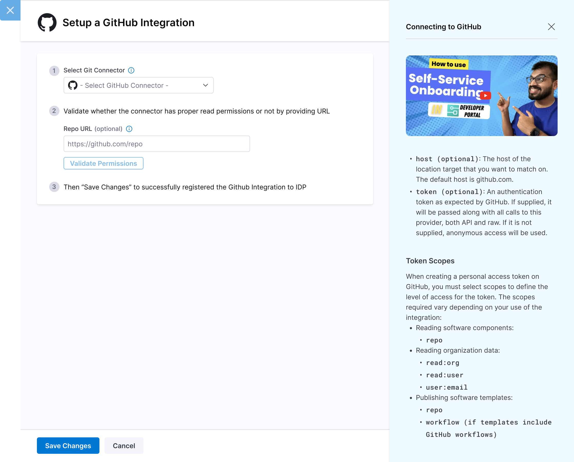 The software components in IDP are defined using YAML files, which are typically stored in your git repositories hence configuring a connector for these git providers is essential to fetch and manage these YAML files.
